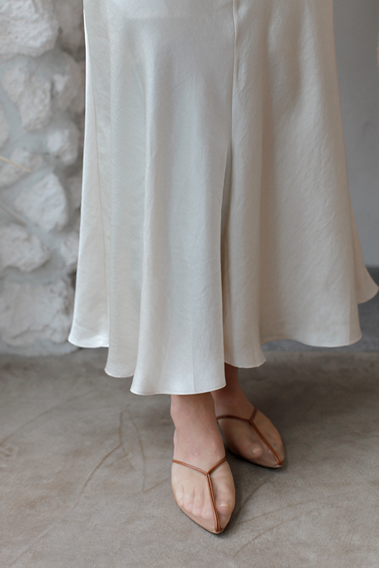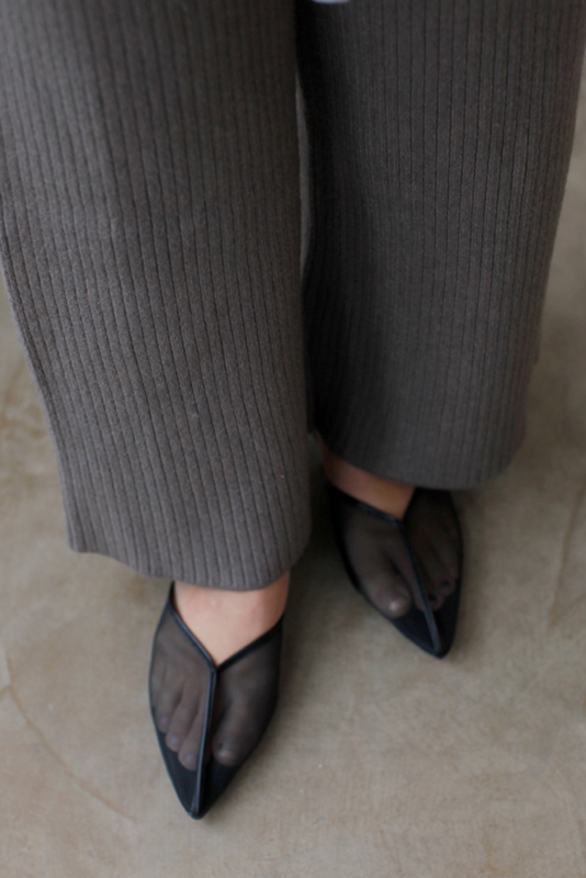 ポインテッドトゥで軽い印象に、履き口のカットも全体的に足を綺麗に見せてくれます。