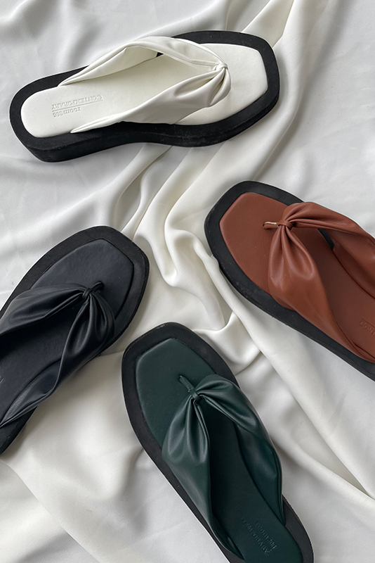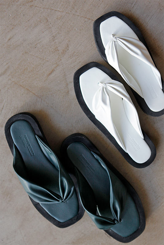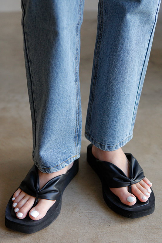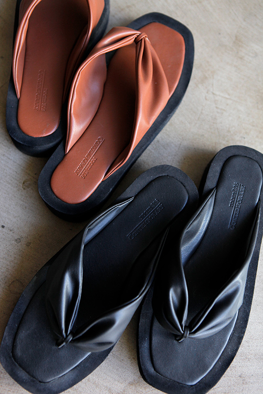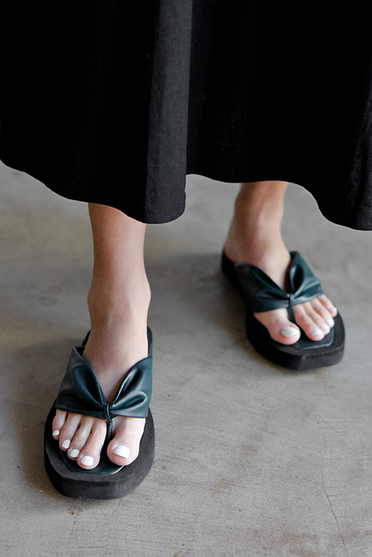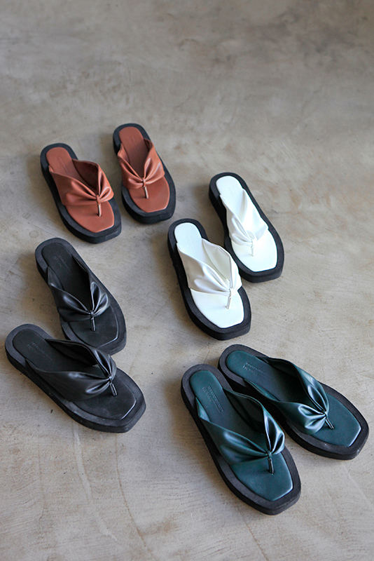 低ソールと太めの幅広のストラップでホールド感、安定感もあり履きやすさも抜群。