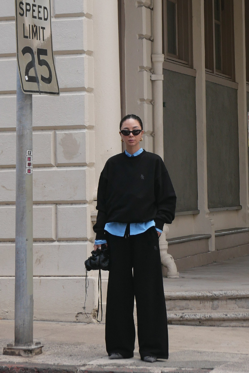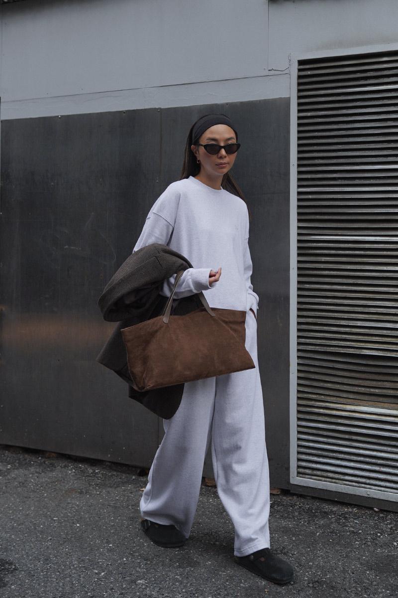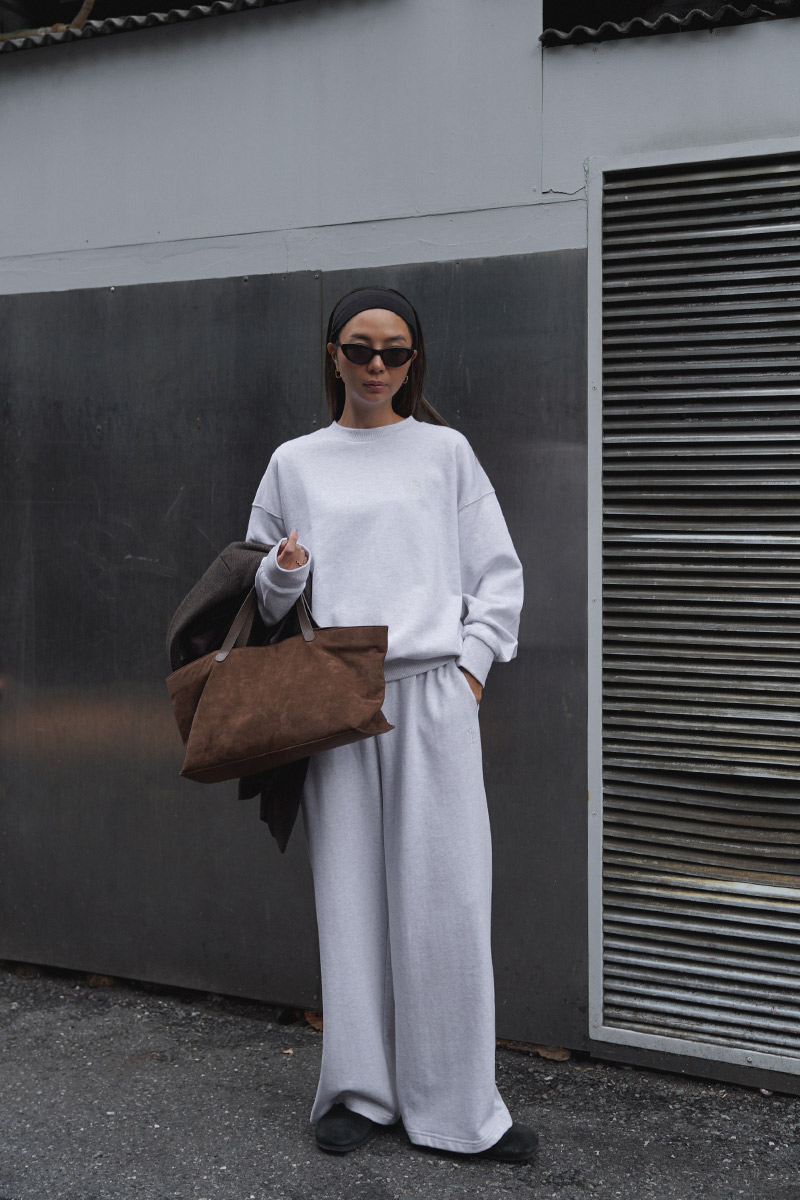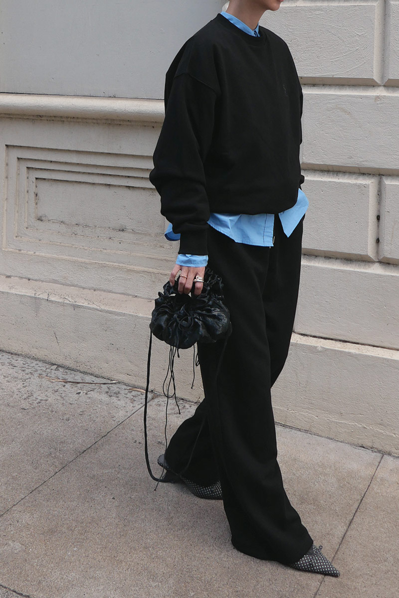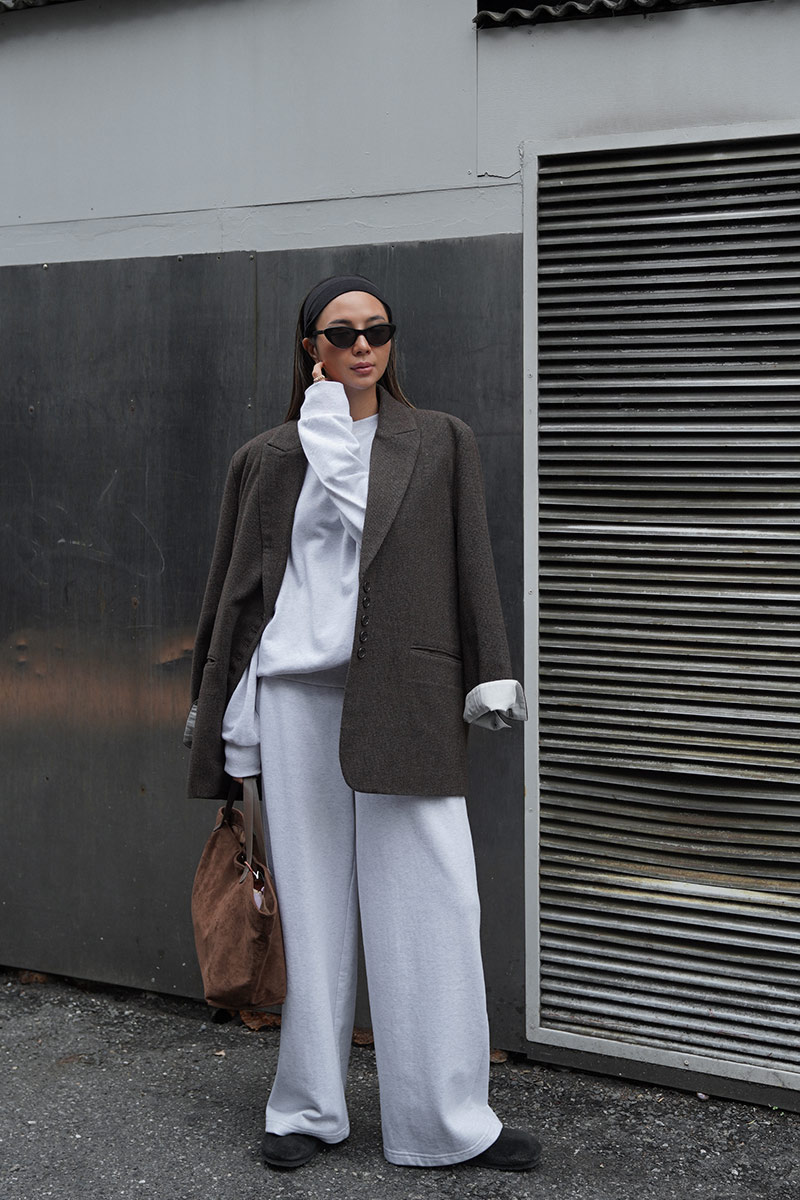 同素材のストレートパンツとセットアップコーディネートもおすすめです。