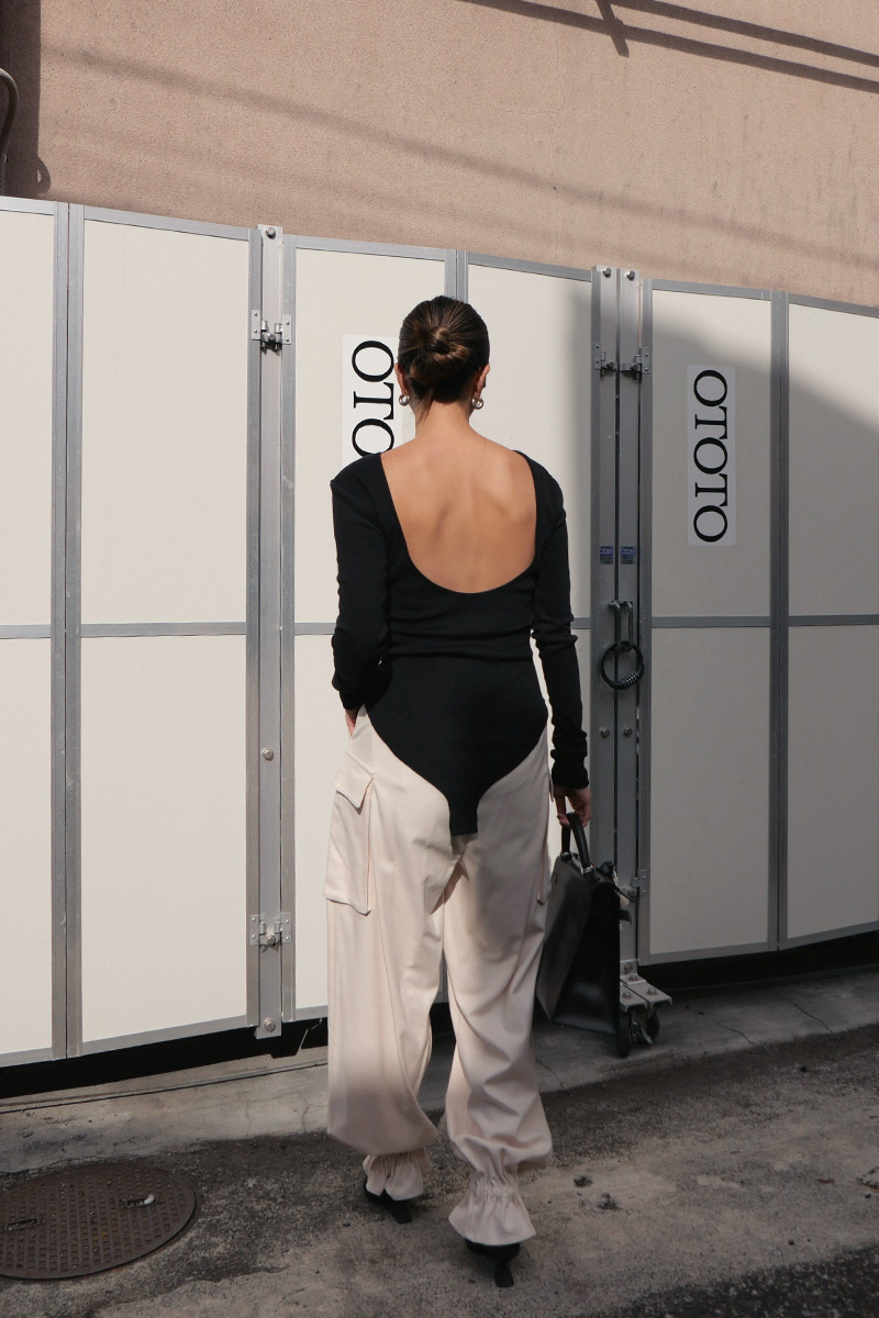 ラインを拾いすぎないほど良いフィット感のあるボディスーツは360度、綺麗に見せてくれます。