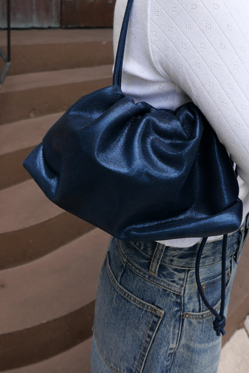 光の当たり方で表情の変わるツヤ感がコーディネートのアクセントに。