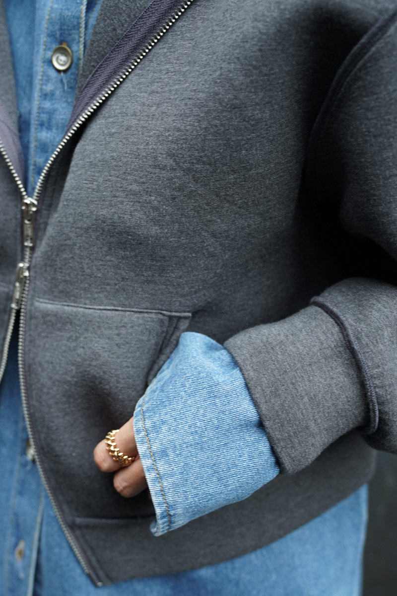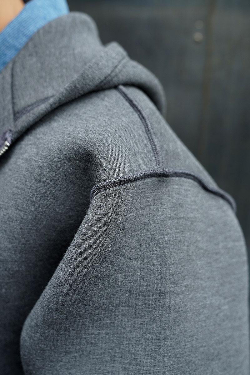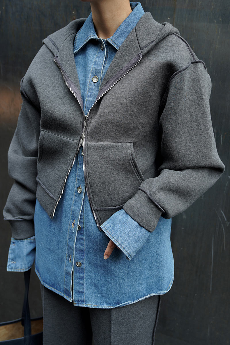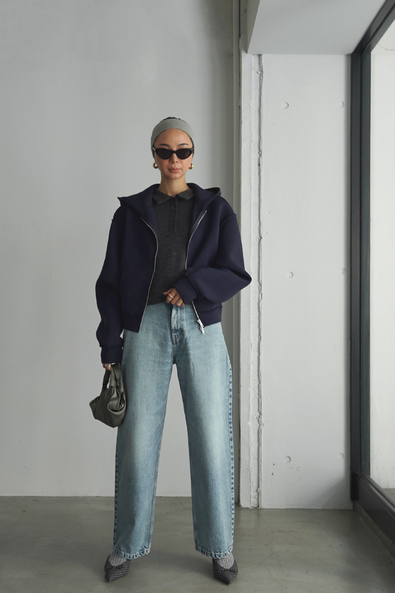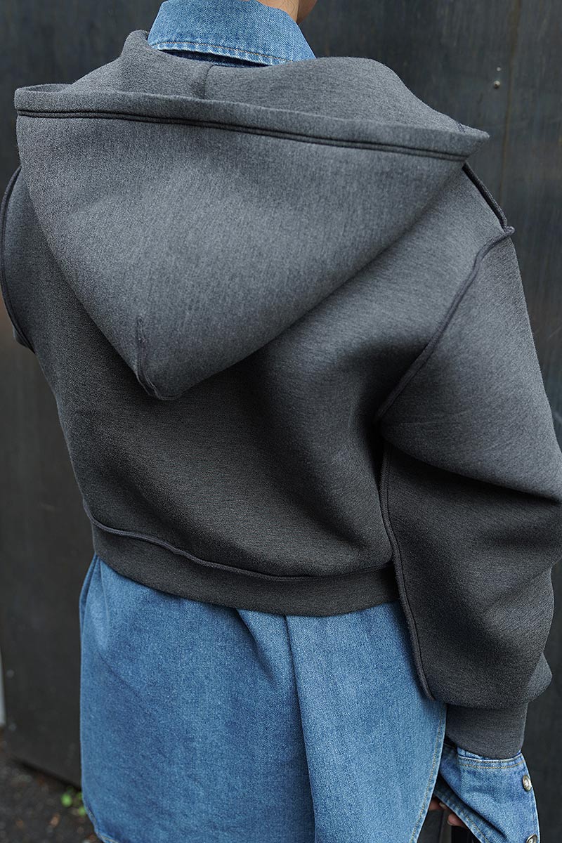 ショートな丈感と大きめのフードがファッション性にも優れておりいいとこ取りなアイテムです。