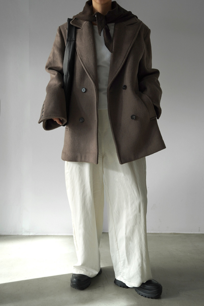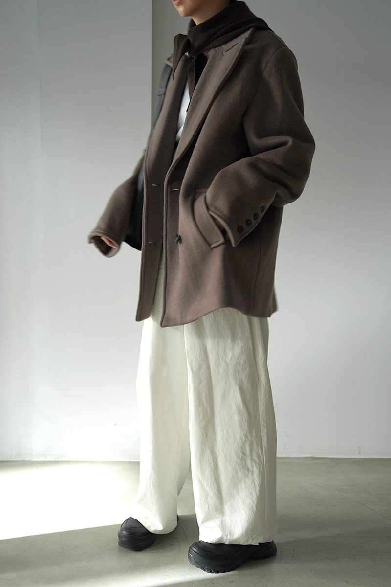 ウール混の軽やかで滑らかな素材感が肌触りがよく長時間の着用も快適。