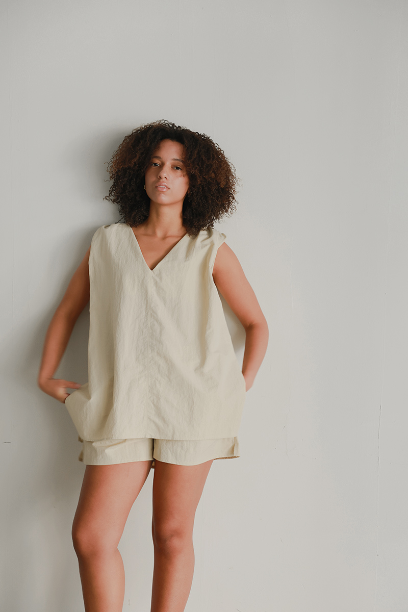 セットのショートパンツはウエストゴムでノンストレス、両サイドポケット付き。