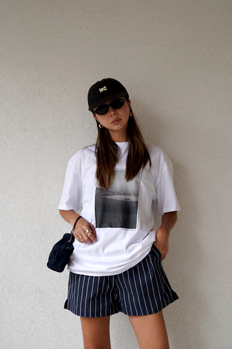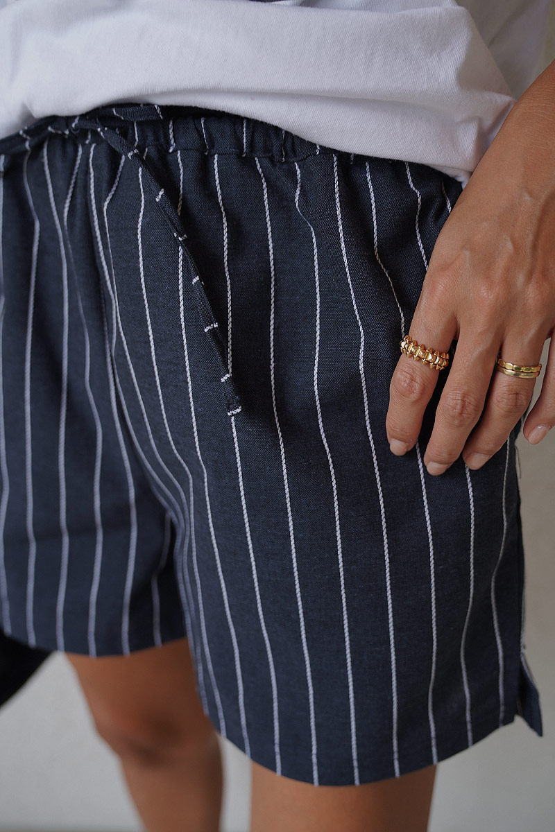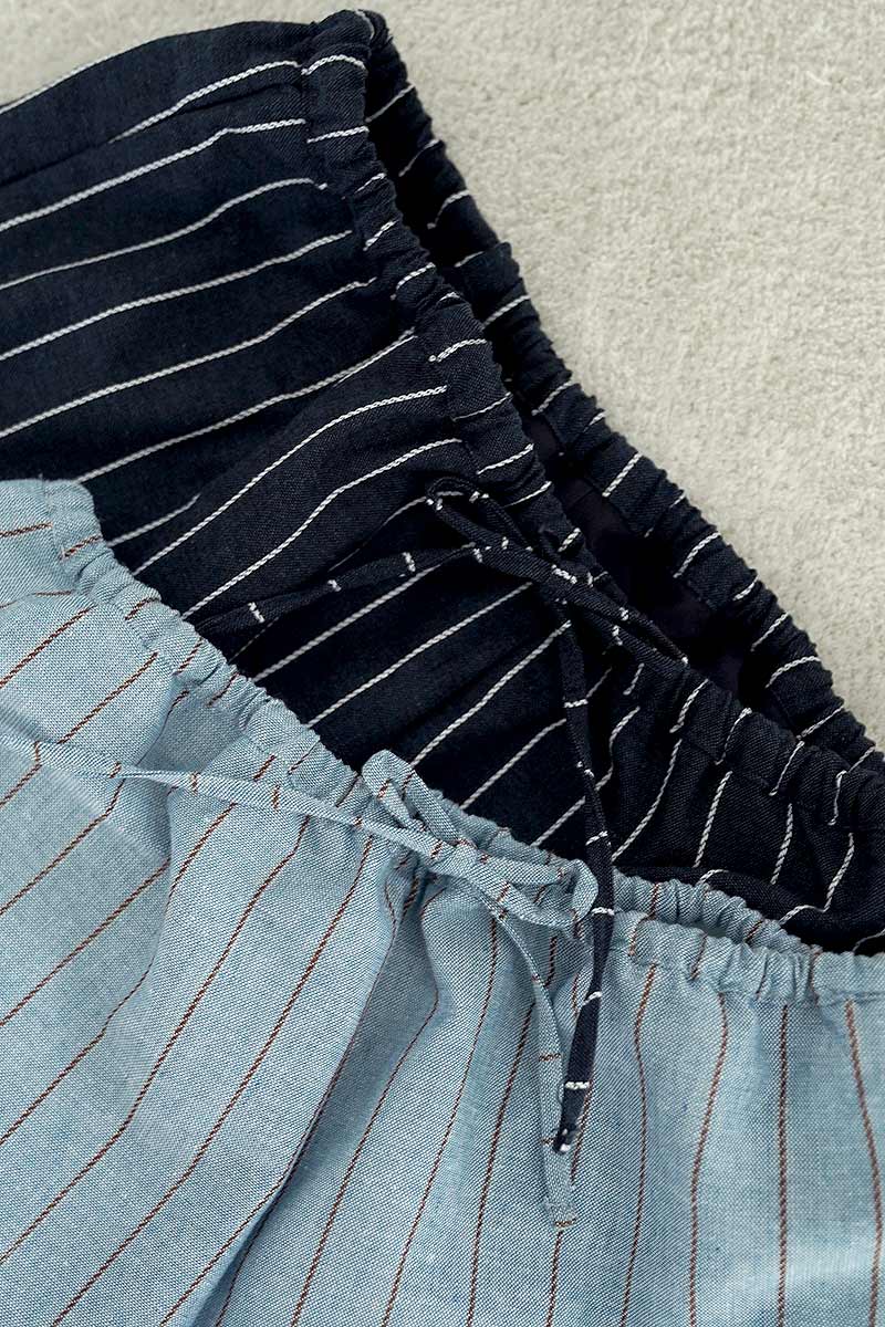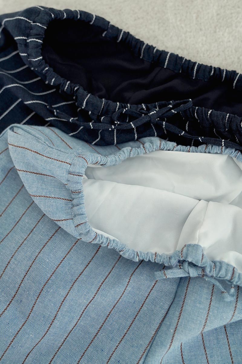 リネン素材にストライプ柄が爽やかさと上品さを両立しシンプルながらもコーディネートに程よいアクセントを加えてくれます。
