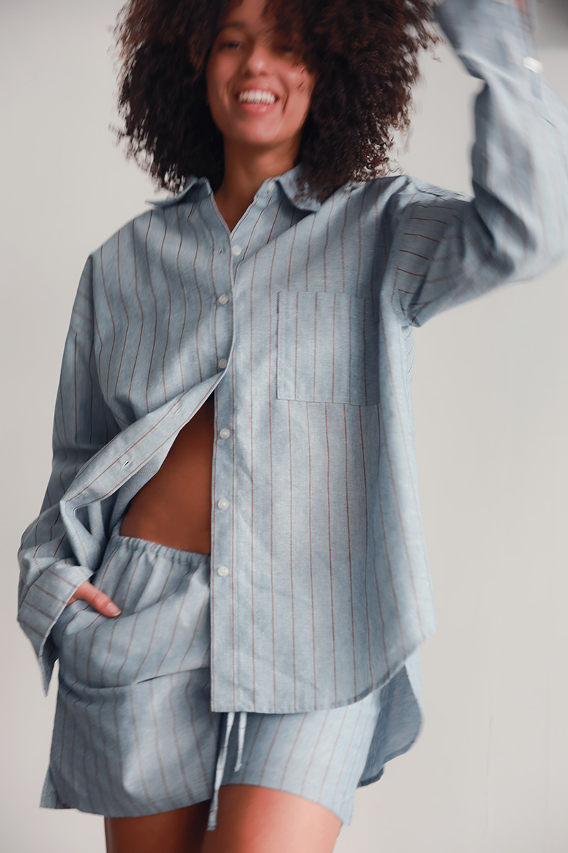 同素材のLinen Stripe ShirtとSet-upの着用もおすすめです。