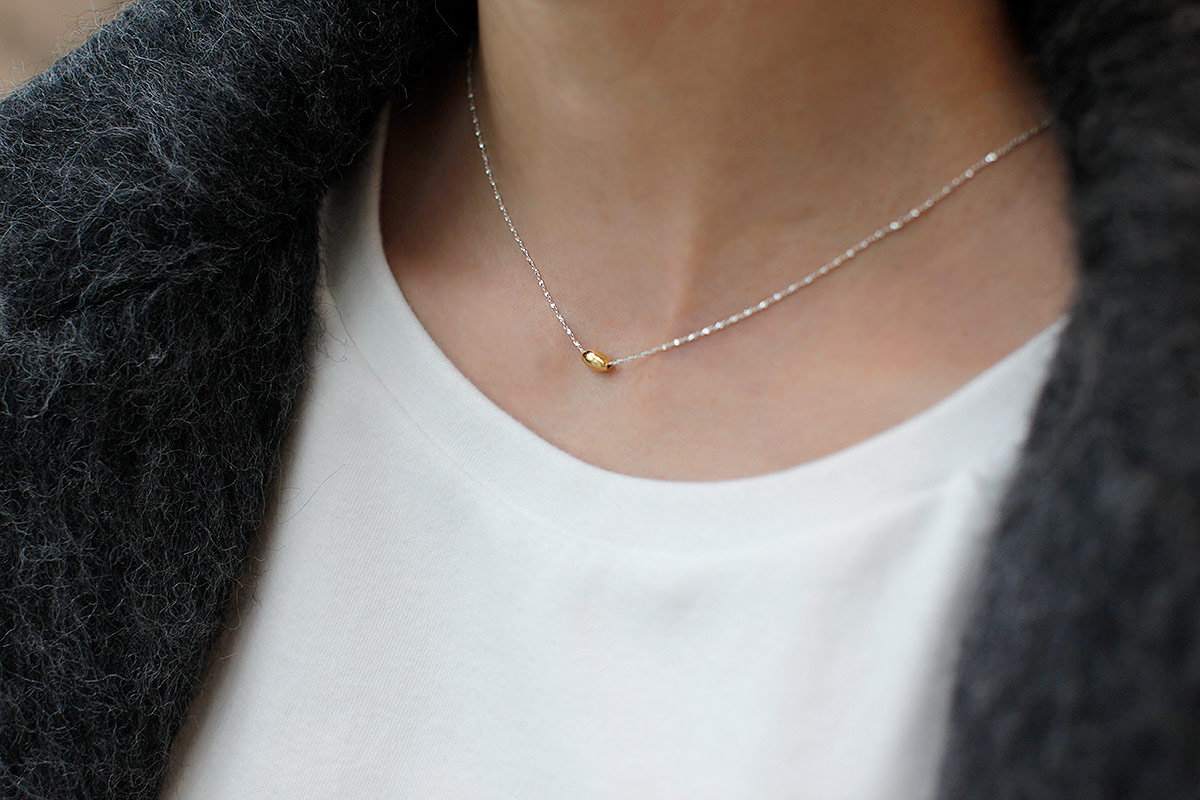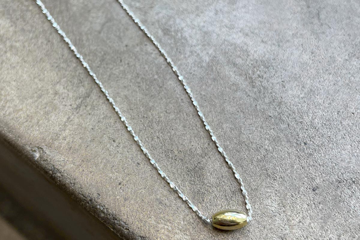 華奢なチェーンでコーディネートの邪魔にもならず、他のアイテムとも重ね付けしたりとお使い頂きやすいアイテムです。