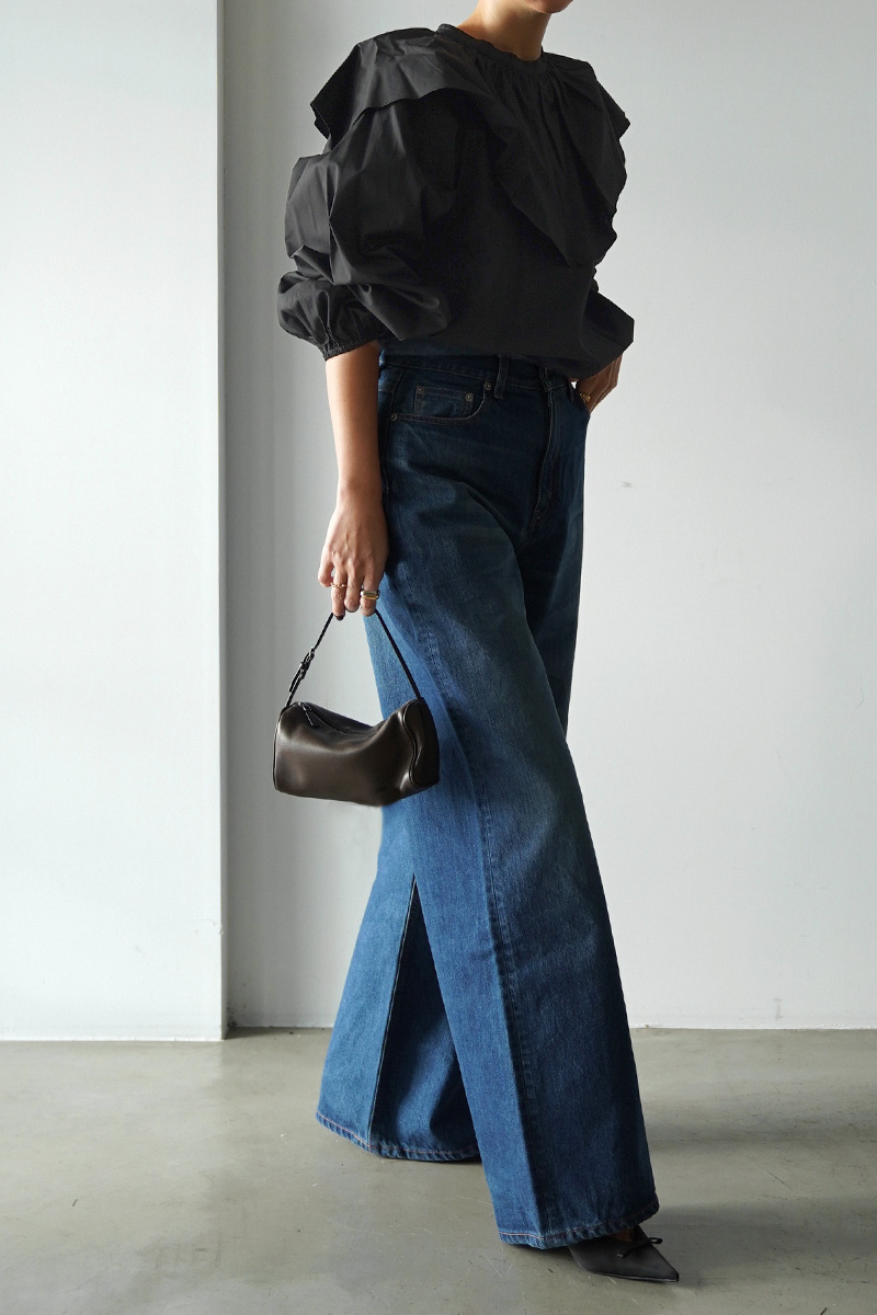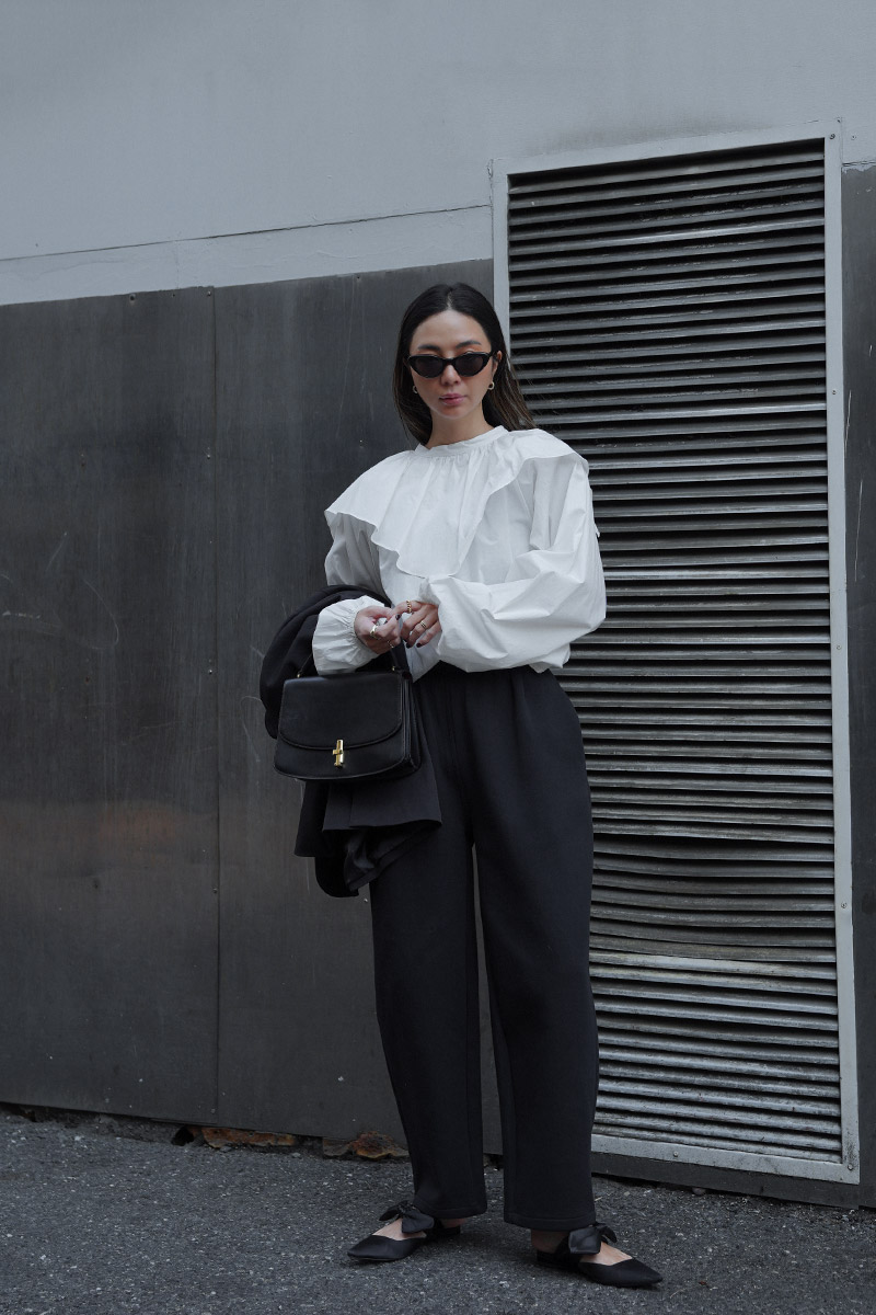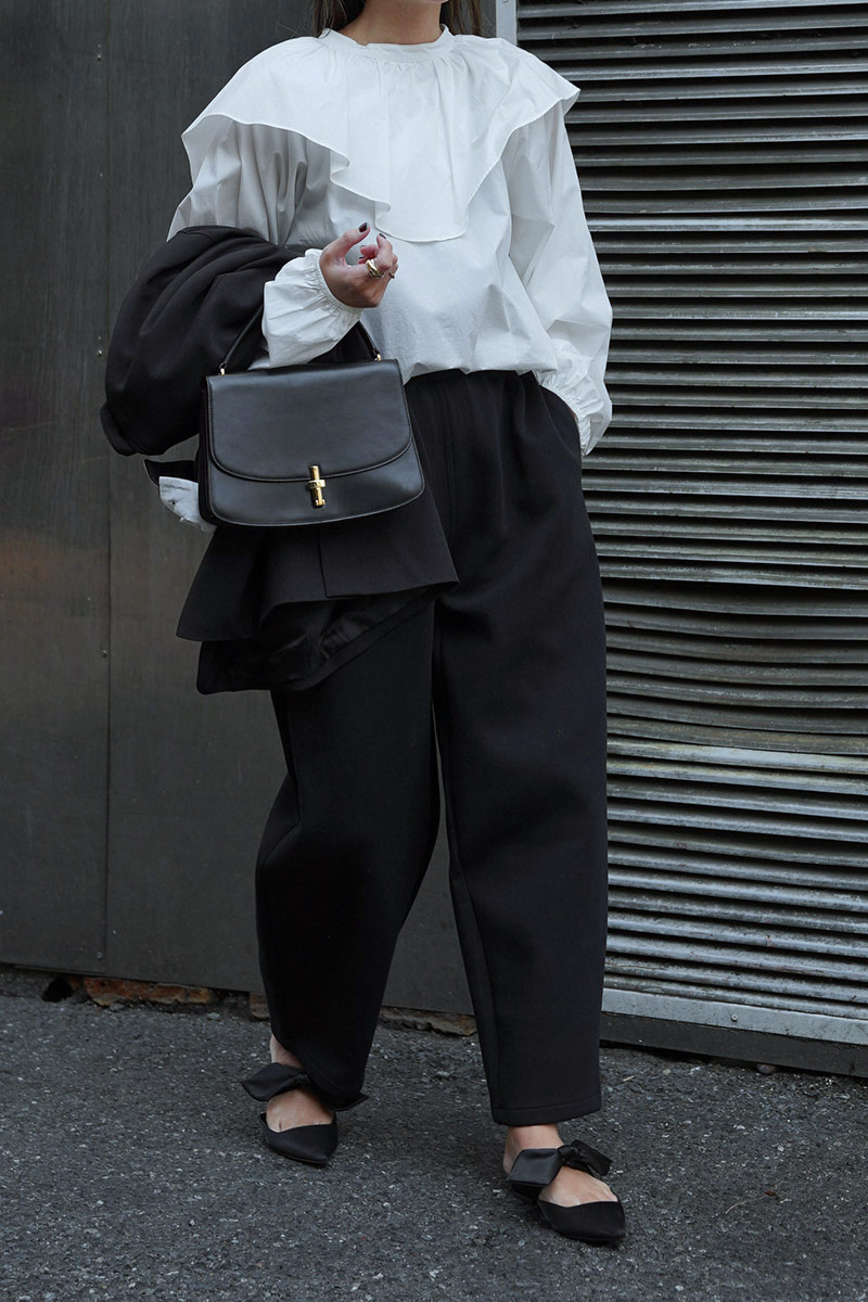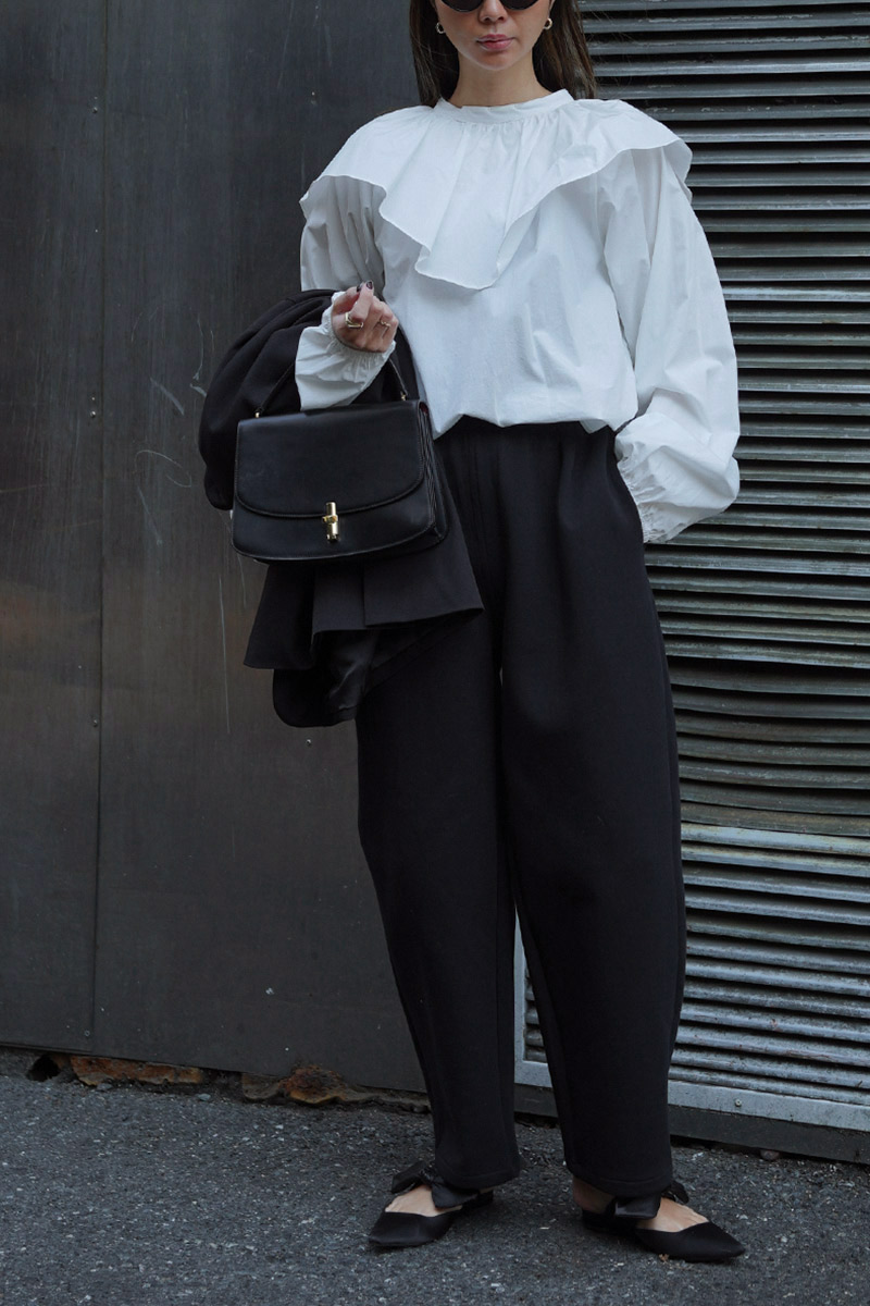 袖周り、襟部分のボリュームもあり、360度どの角度から見ても可愛いフォルムのブラウス。