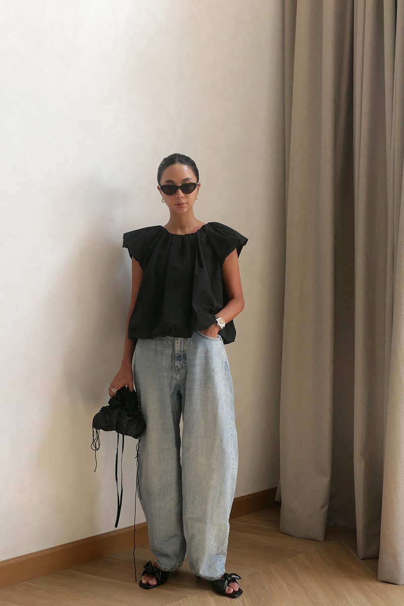 ふわっとした可愛らしいシルエットに張り感のある生地を使用する事で落ち着いた雰囲気も演出してくれます。
