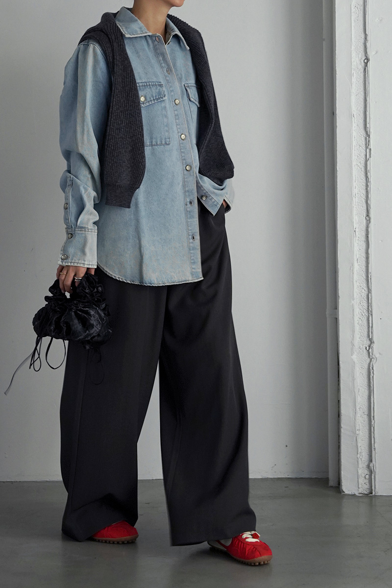 ※デニム製品の特性上、汗や雨などで湿った状態や、摩擦により色移りすることがあります。また、日光や照明を長時間受けますと変色の恐れがあります。ご着用および保管の際はご注意ください。