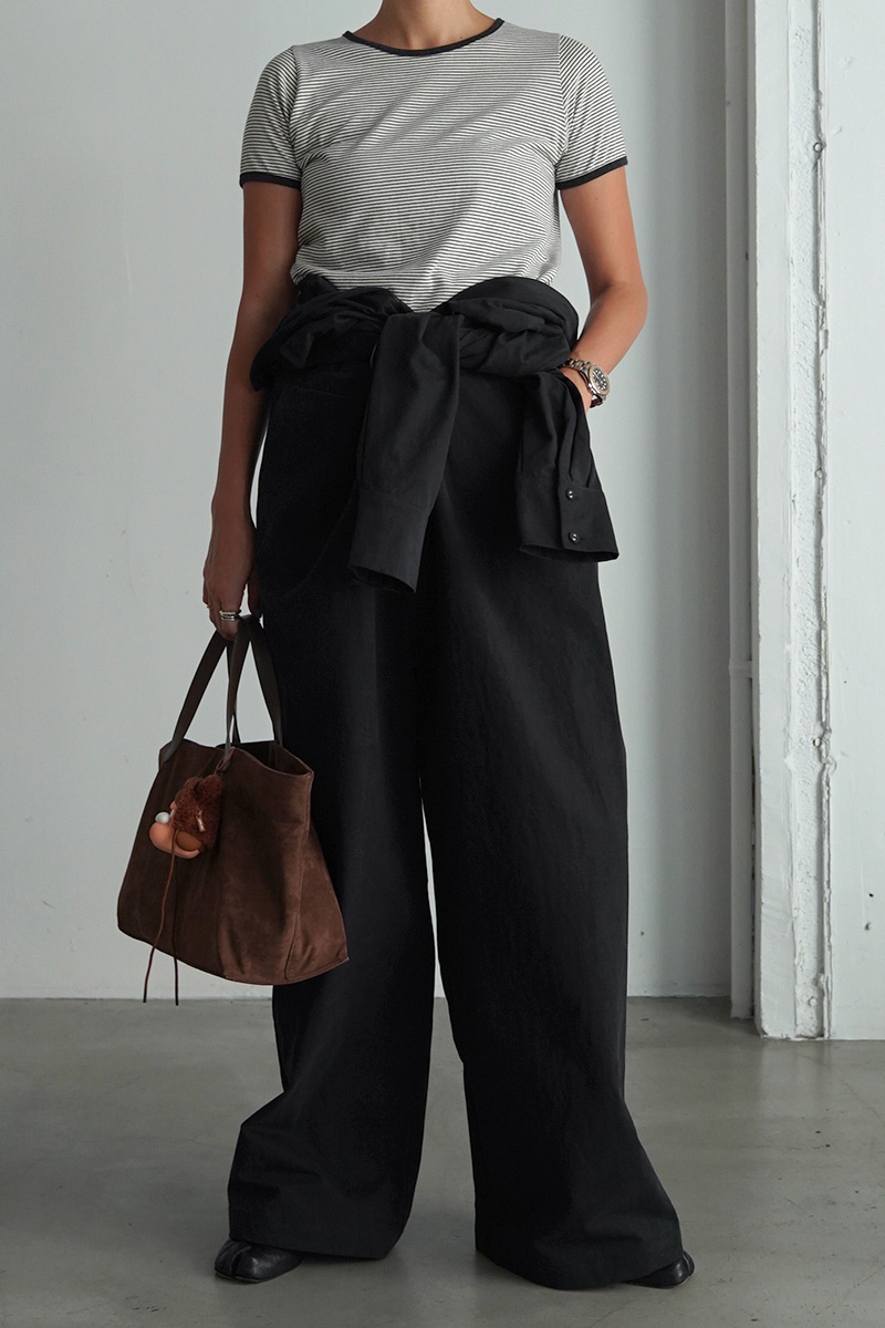 ウエスト部分にはドローコードを施しシルエットにメリハリをプラス。