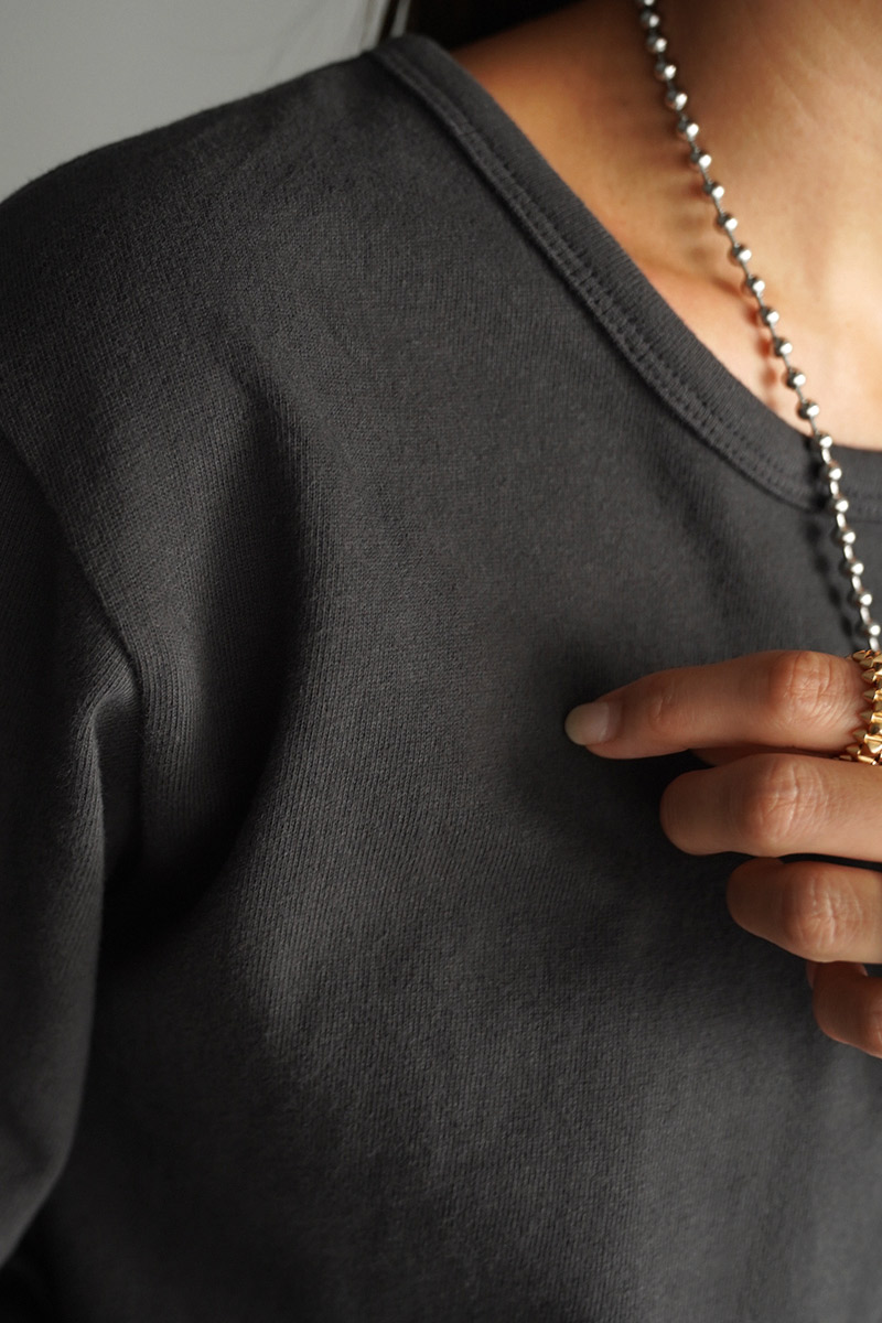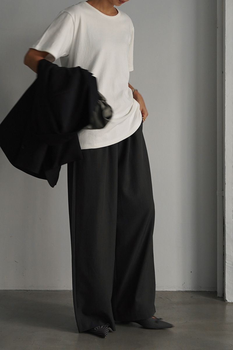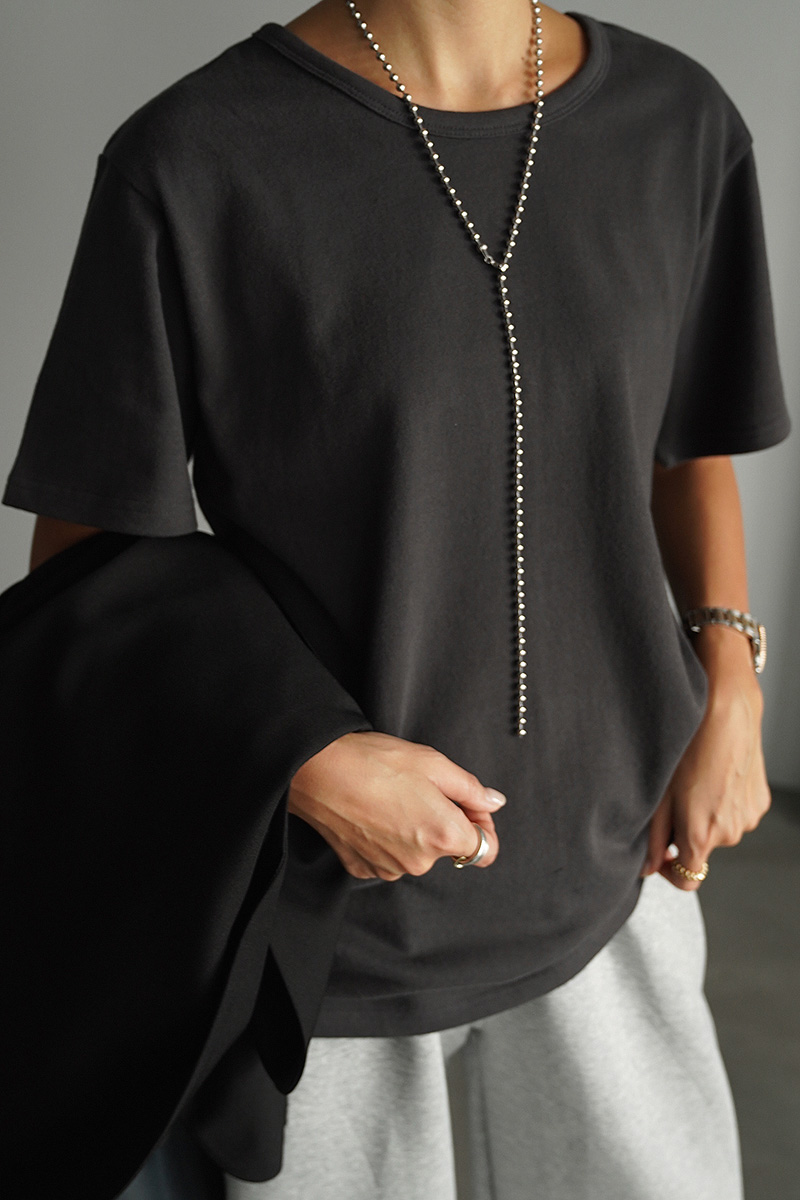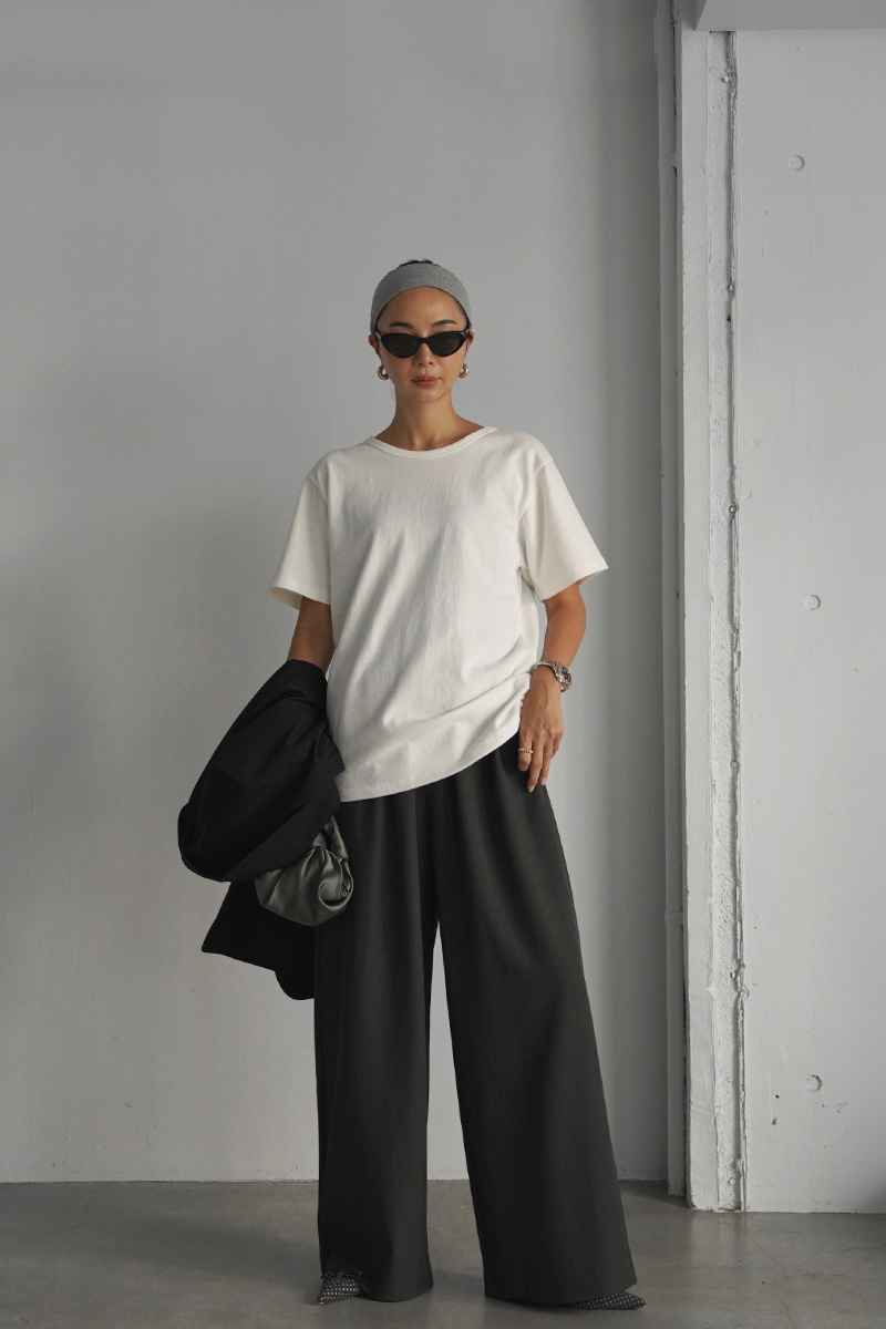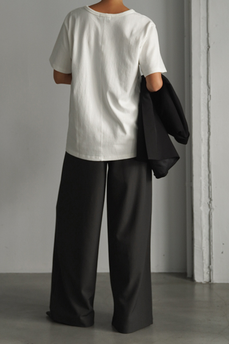 体のラインを拾わないリラックス感のあるシルエットでどんなスタイルにもなじむ万能アイテムです。