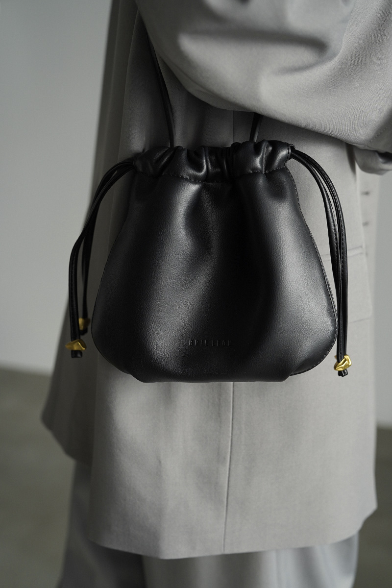 上口は紐を引くと絞れる巾着仕様。さらに内側にはマグネットボタン付きで安心してお使いいただけます。