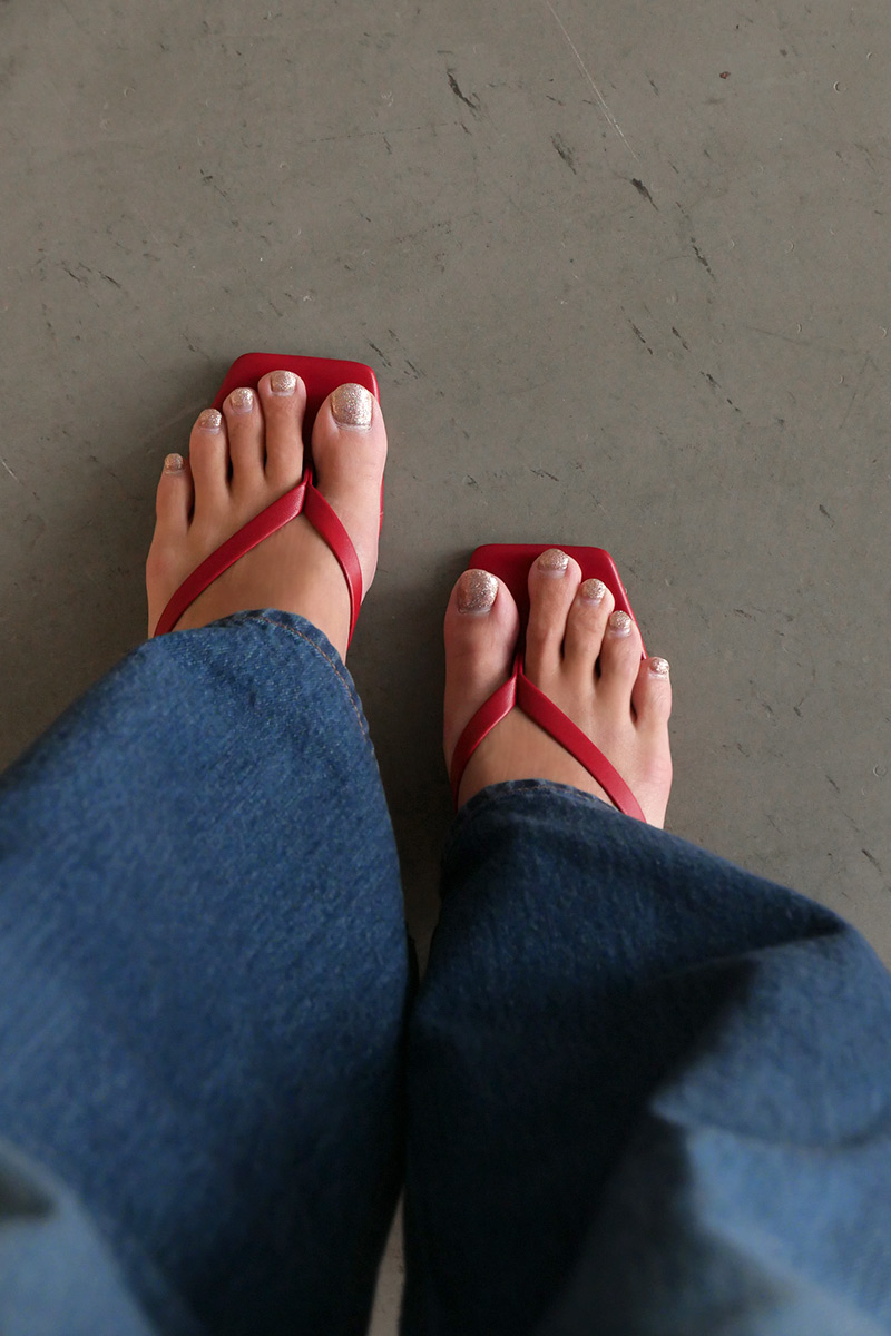 上品で洗練された足元を演出するトングデザインサンダル。